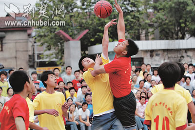 武漢市45中學(xué)的師生籃球賽,體現(xiàn)“師生共同發(fā)展”的德育理念。