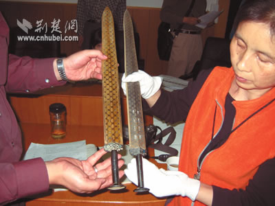 根據(jù)國家文物保護(hù)法實(shí)施條例,復(fù)制文物,須經(jīng)省級(jí)政府文物行政主管部門審核,報(bào)國務(wù)院文物行政主管部門批準(zhǔn)。荊州郢都青銅藝術(shù)研究所宣稱的“高仿真”越王勾踐劍,算不算復(fù)制?省博物館和該所各執(zhí)一詞。