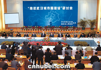 荊楚在線消息(湖北日?qǐng)?bào)) 記者姜平、盧平、通訊員劉月明報(bào)道:昨日,由省委、省政府主辦的“推進(jìn)武漢城市圈建設(shè)”研討會(huì)在漢召開。室外雖寒風(fēng)攜雨催樹,但東湖賓館內(nèi)與會(huì)者發(fā)自肺腑的高論精言,使得大家感覺暖意融融。