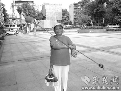 荊楚網(wǎng)消息(楚天都市報)(記者雷艷 實習生丁莉娟)繩子兩端各系一個彩色布球,在空中轉(zhuǎn)起來,彩球像流星飛舞(如圖)。昨日一大早,71歲的魏玉枝來到漢口中山公園,玩起流星球。