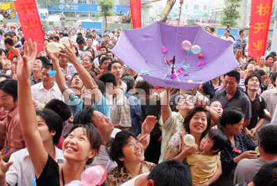 位于銷品茂北側(cè)的中商百貨銷品茂店昨日也同時(shí)開業(yè)。為吸引顧客眼球,中商百貨還在開業(yè)慶典時(shí)送出了1個價(jià)值7000元的鉆戒和5條鉑金項(xiàng)鏈,6位市民搶得“好運(yùn)”。