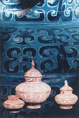 彩繪陶罐:食器或禮器(左,高17厘米;中,高40厘米;右,高23厘米)
