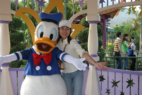 和唐老鴨合個影一圓童年的夢想