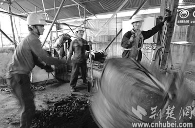復(fù)雜的地質(zhì)結(jié)構(gòu)讓先進(jìn)的機械設(shè)備使不上勁,百米深的樁基只能靠人工來完成。本報記者楊平攝