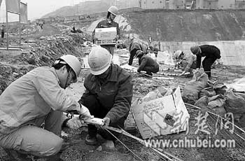 為確保爆破萬(wàn)無(wú)一失,大年初四,公司總工程師李宏兵就從重慶趕到工地督戰(zhàn)。“爆破難度并不小,我們不敢有絲毫的馬虎!崩詈瓯f(shuō),防滲墻高24米,墻體不均質(zhì)、不等厚,爆破時(shí)既要將防滲墻混凝土炸碎,又要將預(yù)埋灌漿鋼管炸斷,爆破難度可想而知。