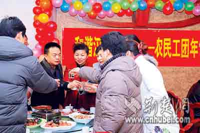 昨日中午,漢陽區(qū)文明辦、建管站和勞動局等部門請來40多名農民工代表,和區(qū)領導一起吃年飯,這是漢陽區(qū)“文明和諧社區(qū)建設迎春行動”的系列活動之一。