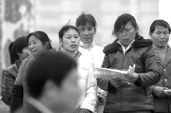 在武漢2007春季首場農(nóng)民工招聘會上,幾位來自黃梅的農(nóng)民工在私下討論:“今年招工才剛開始,要先比較哪家更好!