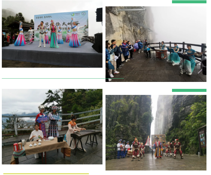 恩施大峽谷七星寨景區(qū)索道上站觀景平臺上,隨著恩施市文旅形象歌曲《情漫恩施》的精彩呈現(xiàn),精品演藝和非遺進(jìn)景區(qū)系列活動正式拉開帷幕。男聲獨(dú)唱《大峽谷有哈數(shù)》、儺戲表演《開葷敬酒》、歌舞《我在恩施等著你》等精品演出節(jié)目向游客送上一場精彩的文化藝術(shù)盛宴,同時獻(xiàn)上一份特別的中秋國慶雙節(jié)禮物。