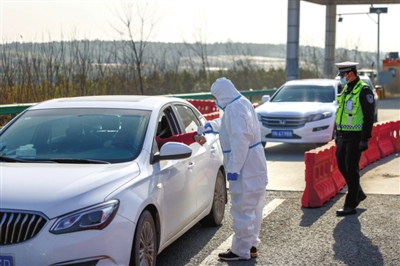 1月28日,2021年春運開啟。29日上午,在咸安區(qū)張公高速收費站路口,紅色水碼擺放成指引車道,幾個全副武裝的工作人員正對過往車輛逐一進行排查。遇到外地或中高風險地區(qū)來車就指引其到帳篷內(nèi)測體溫、查健康碼等,并詳細登記對方信息。
