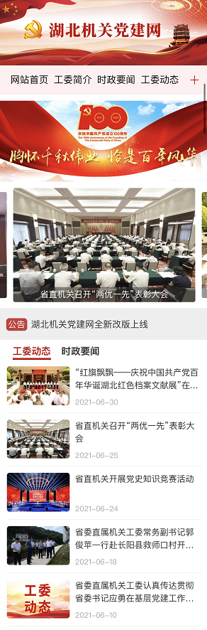 建網(wǎng)15年來,湖北機關(guān)黨建網(wǎng)總體運行良好,傳播力、影響力和公信力逐年提升,成為全省機關(guān)黨建工作的窗口,交流黨建工作的重要陣地。省委直屬機關(guān)工委歷來高度重視湖北機關(guān)黨建網(wǎng)陣地建設(shè),為了更加符合新媒體時代發(fā)展趨勢,更加貼近黨員干部的用網(wǎng)需求,今年聯(lián)合荊楚網(wǎng)技術(shù)團隊,對網(wǎng)站的頁面風(fēng)格、欄目設(shè)置、選題內(nèi)容等進行優(yōu)化,并推出手機版,實現(xiàn)了一鍵帶圖分享、字體自由調(diào)節(jié),欄目更加科學(xué)、界面更加大氣、訪問更加便捷、閱讀更加流暢。