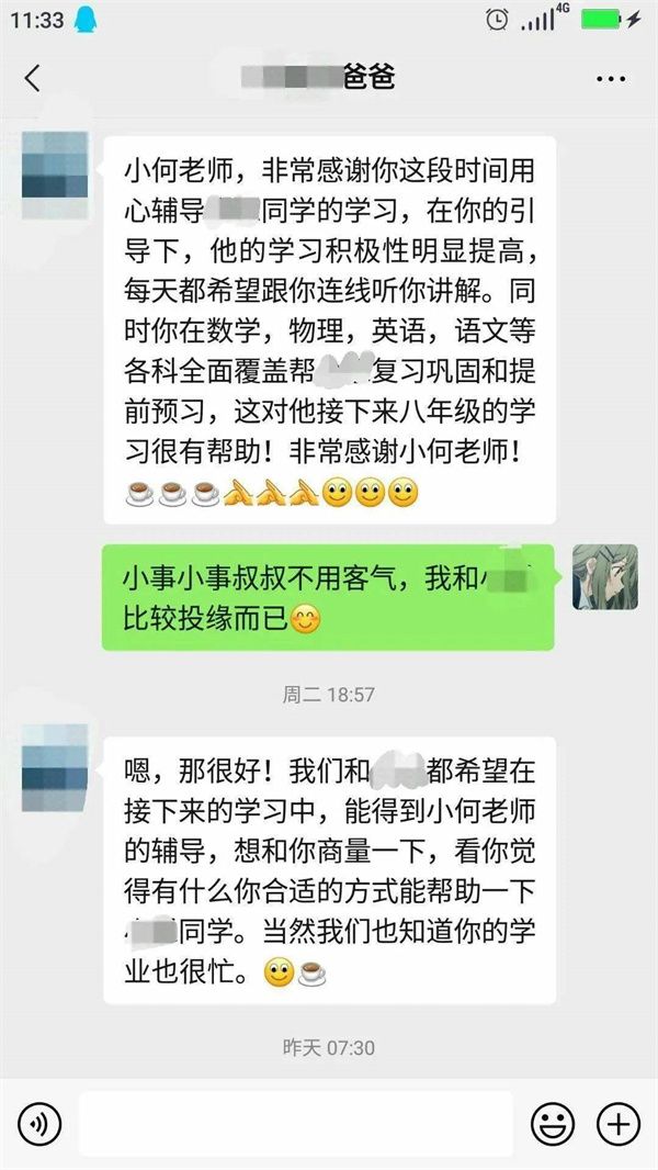 2021年的第一次線上志愿輔導在我的激動、欣喜、緊張交錯之中開始了。第一步也是最重要的一步:和家長進行交流與溝通。說實話,我的心里還是非常忐忑的:害怕家長不回復消息,害怕不能很好地了解小朋友的學習狀況。但其實邁出溝通的第一步之后,后面的對話就很自然了,并沒有想象中的那么困難和緊張。而且很幸運的是,家長很配合我們的輔導活動,我的心里瞬間就放松了不少,自信心也莫名大增!被叫老師,真是很久違的感覺,令我成就感倍增,獲得了家長的稱贊也讓我很開心。而我本身也很喜歡數(shù)學,希望我的興趣可以感染到小朋友,讓她也能喜歡數(shù)學。也希望通過基本的閱讀寫作教學,讓她能夠提升自己。