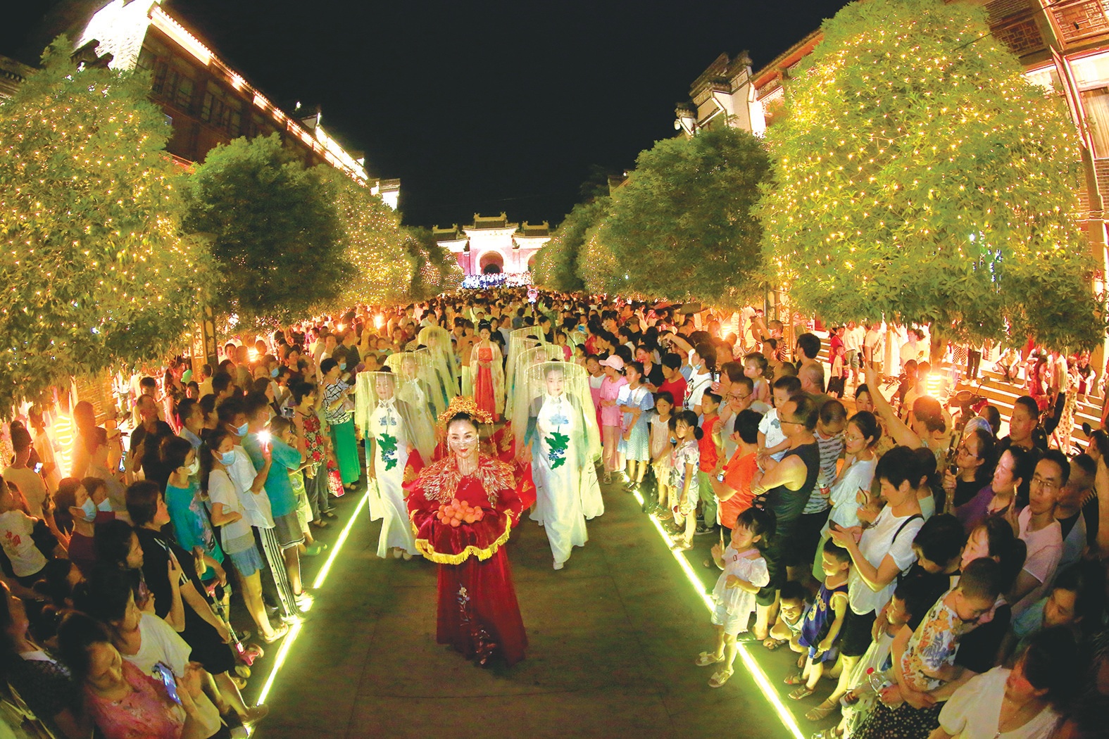 15日至16日晚,在武當山玉虛街舉行的非遺廟會,點亮夜經(jīng)濟。除了極具看點的武當非遺文化展演,無人機天幕秀也令人震撼,此外,琳瑯滿目的美食極大滿足了游客的味蕾體驗,紅火熱鬧的玉虛街已成為游客夜游武當?shù)拇蚩ǖ?。圖/記者 朱江 特約記者 范學峰