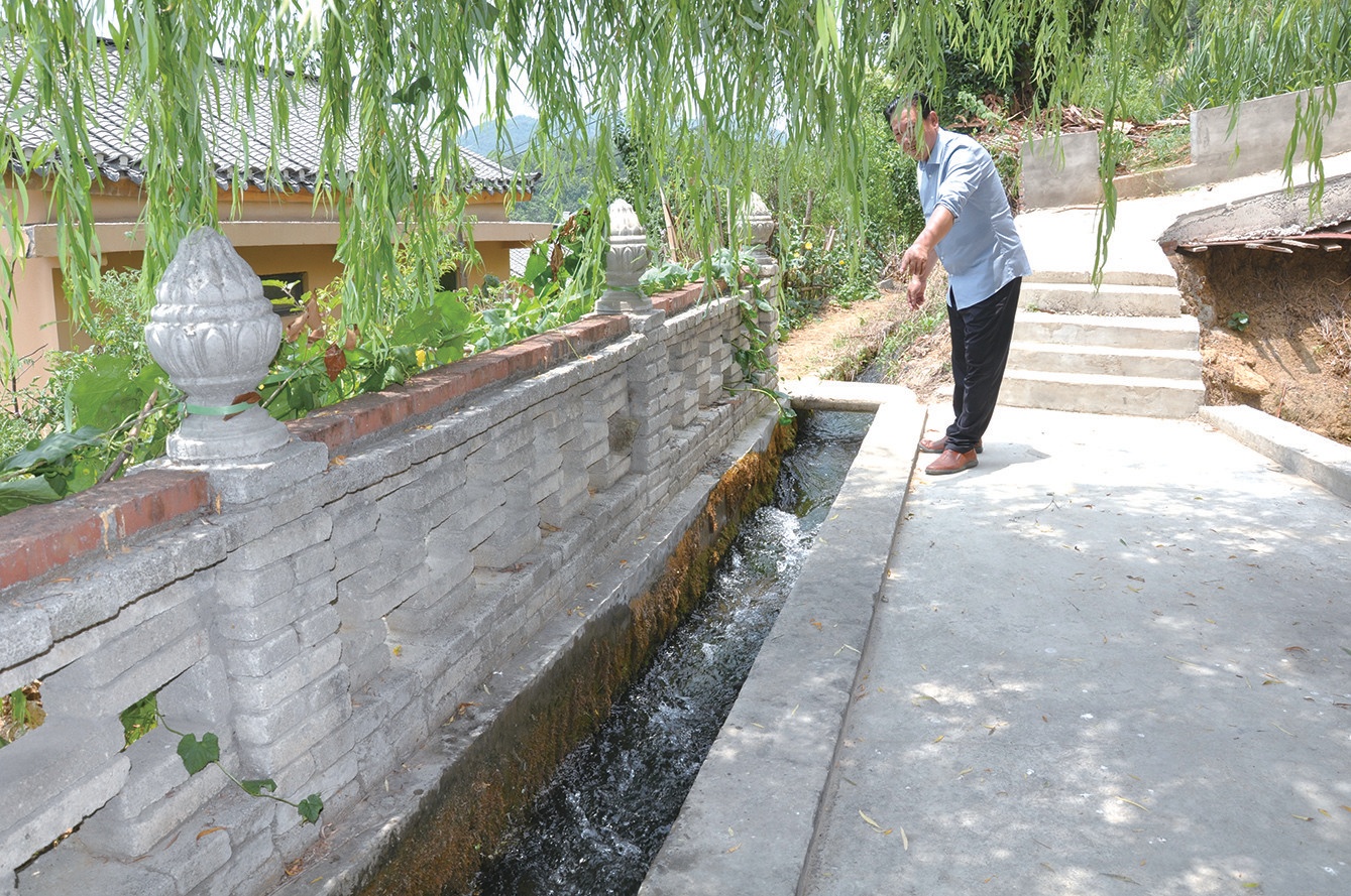 原村支書高傳海望著“五四長(zhǎng)渠”涓涓流淌的渠水感慨萬千。
