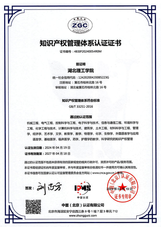 通過知識產權管理體系認證,標志著湖北理工學院在知識產權創(chuàng)造、運用、保護、管理邁上了新臺階。接下來,湖北理工學院將以通過知識產權管理體系認證為契機,緊緊圍繞應用型高校建設與知識產權事業(yè)高質量發(fā)展主題,進一步激發(fā)創(chuàng)新活力,促進學校知識產權創(chuàng)造質量、運用效益及管理水平和服務能力的全面提升。