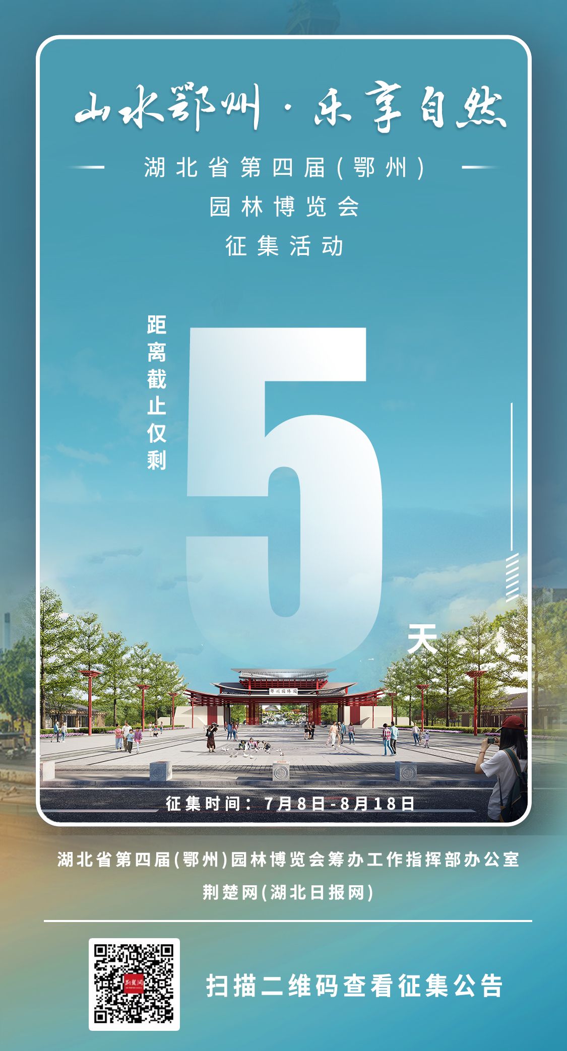 荊楚網(wǎng)(湖北日報網(wǎng))訊(記者陶輝 金康 通訊員 秦才勝)山水鄂州,樂享自然。8月14日,記者從湖北省第四屆(鄂州)園林博覽會(以下簡稱“鄂州園博會”)籌辦工作指揮部辦公室獲悉,會徽、會歌、吉祥物及宣傳口號征集工作將于8月18日截止。