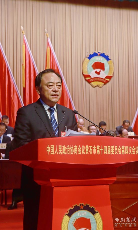 2月6日,中國(guó)人民政治協(xié)商會(huì)議黃石市第十四屆委員會(huì)第四次會(huì)議在黃石磁湖劇院開(kāi)幕。中共黃石市委書記郄英才講話。