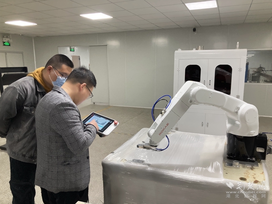 赤壁一制造業(yè)企業(yè)內(nèi),開發(fā)人員正調(diào)試設(shè)備。黃錚 攝