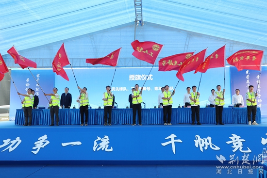 儀式上,通報表揚了過去一年競賽中涌現(xiàn)的先進典型;安排2025年全市雙“百千萬”勞動和技能競賽工作;舉行“黨員先鋒隊”“工人先鋒號”“青年突擊隊”授旗儀式;鄂城區(qū)總工會、中建三局工會、華中數(shù)控工會作交流發(fā)言。