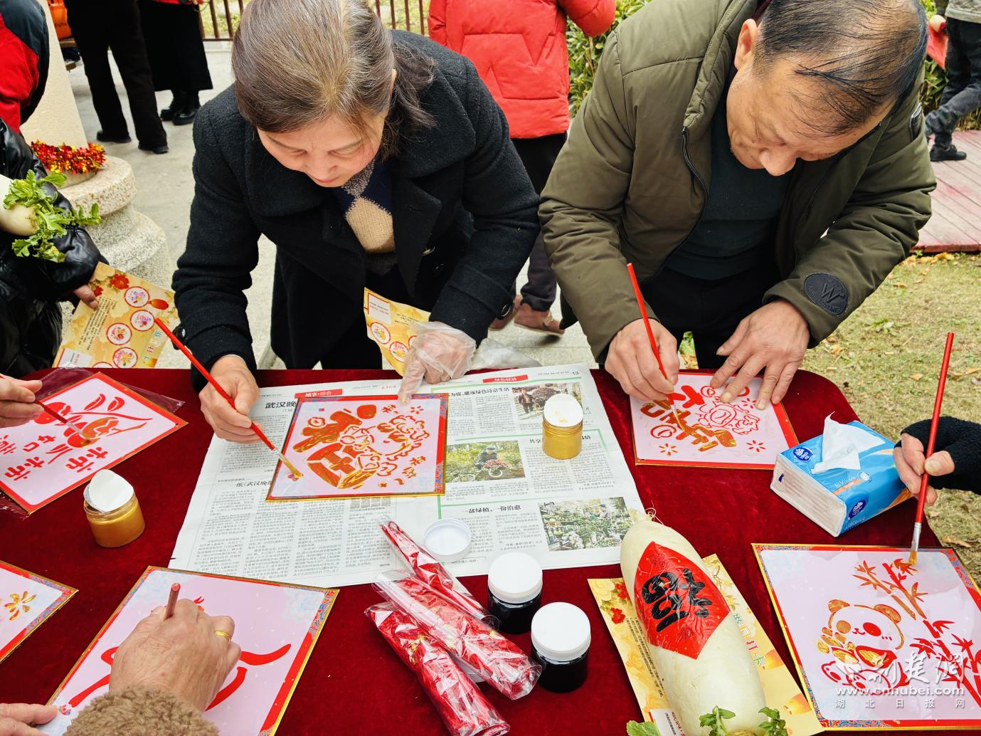 手工體驗(yàn)區(qū)則充滿了濃厚的文化韻味,大家在志愿者的指導(dǎo)下,將雕刻著不同書體“福”字與馬年吉祥紋樣的模板,小心翼翼拓印在紅色宣紙上。當(dāng)一幅幅帶著墨香的福字躍然紙上,不僅定格了傳統(tǒng)技藝的獨(dú)特魅力,更承載著大家對(duì)新年福氣盈門的美好期盼。“我拓了一個(gè)‘?!?,打算帶回家貼在門上,希望新的一年全家都福氣滿滿!”一位年輕媽媽舉著自己的作品,開心地分享道。