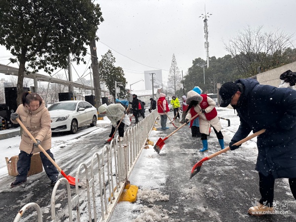 面對(duì)雪情,街道迅速啟動(dòng)應(yīng)急響應(yīng)機(jī)制,提前統(tǒng)籌物資與人員,確保除雪作業(yè)高效有序開(kāi)展?!奥勓┒鴦?dòng)”成為街道上下的共同行動(dòng)。志愿服務(wù)力量第一時(shí)間集結(jié),奔赴除雪一線,開(kāi)展撒鹽除冰、積雪清運(yùn)、防滑墊鋪設(shè)等工作。在寒風(fēng)凜冽的街頭,一抹抹“志愿紅”格外醒目,他們用雙手鏟出一條條平安通道,在寒冬中筑起溫暖而堅(jiān)實(shí)的安全防線,傳遞著守望相助、共建共享的溫情。