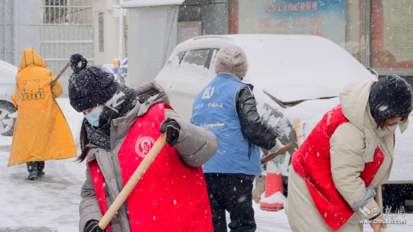 大成社區(qū)聯(lián)合多方力量除雪。 通訊員供圖