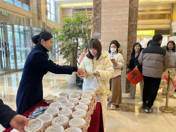正午時分,另一旁的粥品區(qū)飄出濃郁香氣。12點整,工作人員和樓宇黨建指導(dǎo)員準(zhǔn)時為排隊職工贈出臘八粥,糯米的綿軟、紅豆的香甜、紅棗的醇厚在碗中交融,“一碗香甜軟糯,暖胃更暖心”的貼心叮嚀格外溫情。剛領(lǐng)到粥的職工小孫捧著熱碗笑道:“這粥熬得特別地道,喝下去全身都暖了,感覺工作的疲憊都消了大半?!?/p>
