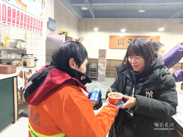 為環(huán)衛(wèi)工人送上暖心臘八粥。 通訊員供圖