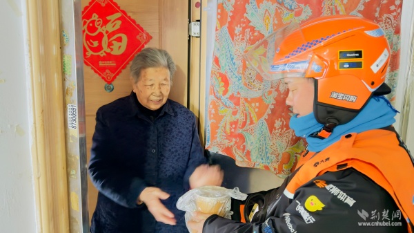溫暖派送覆蓋多元群體。在戶外勞動者驛站,環(huán)衛(wèi)工人、快遞外賣騎手從志愿者手中接過熱粥;社區(qū)還鏈接武漢市第三醫(yī)院資源,為戶外工作者提供健康咨詢。幾位外賣騎手主動化身“公益騎手”,與黨員志愿者一同將暖心粥品送至“鶴耋安”高齡獨(dú)居老人家中。黨員志愿者還走訪了周邊商戶、殘疾人家庭及退役軍人家屬,并在社區(qū)設(shè)點(diǎn)邀請居民共享溫情。一碗粥,沿著黨員和志愿者的溫暖足跡,流入社區(qū)每個角落。