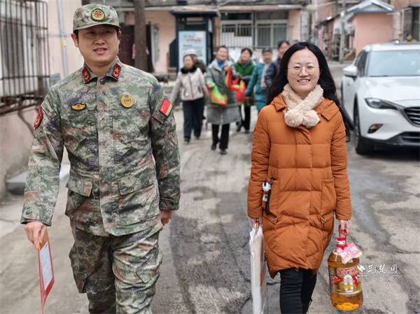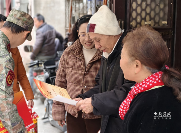 荊楚網(wǎng)(湖北日?qǐng)?bào)網(wǎng))訊(通訊員 蘇楚雄 鐘霓 游薇 侯本瑞)1月29日,武昌區(qū)楊園街道電力新村社區(qū)鑼鼓聲響、熱鬧非凡。街道人武部、退役軍人服務(wù)站和社區(qū)工作人員組成“報(bào)喜小隊(duì)”為現(xiàn)役軍人家屬送去子女在部隊(duì)榮獲的“四有”優(yōu)秀學(xué)員榮譽(yù)證書,并送上慰問(wèn)物資,傳遞對(duì)軍屬的崇高敬意和誠(chéng)摯關(guān)懷。