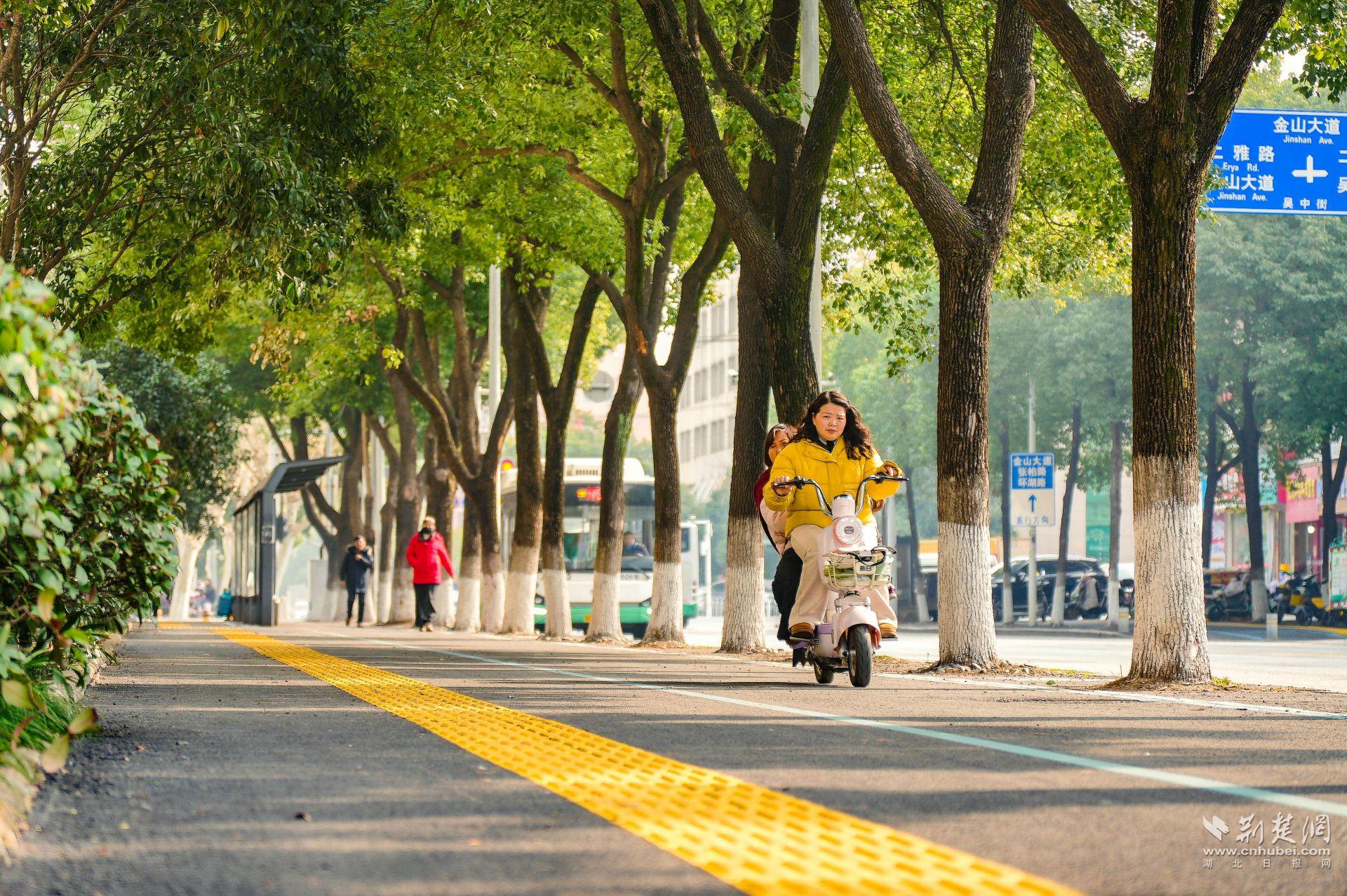 另一個(gè)明顯變化是,人行道旁多出了一條清晰的非機(jī)動(dòng)車(chē)道。過(guò)去,吳中街沒(méi)有專(zhuān)門(mén)的非機(jī)動(dòng)車(chē)道,人車(chē)混行存在隱患?,F(xiàn)在,“人非共面”的模式讓騎行與步行各自有序,盲道也同步更新,安全系數(shù)大幅提升。
