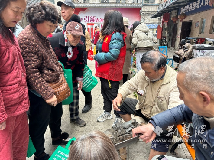 便民服務(wù)區(qū)人氣最旺。武商集團(tuán)世貿(mào)廣場(chǎng)帶來的專業(yè)皮具清理服務(wù),讓不少“老物件”煥然一新;理發(fā)、磨刀、洗鞋、洗鍋等攤位前,志愿者們動(dòng)作嫻熟、服務(wù)周到,幫居民解決生活中的“關(guān)鍵小事”。