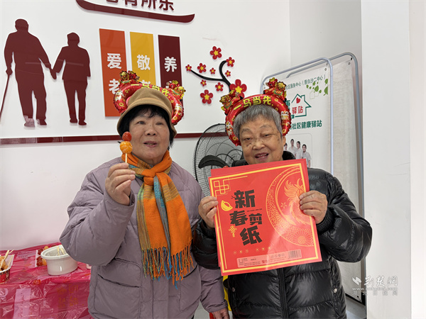 “金曲聯(lián)唱”環(huán)節(jié),長者們齊唱《恭喜恭喜》《新年好》等經(jīng)典曲目,熟悉的旋律勾起共同記憶,現(xiàn)場歡聲笑語不斷。“共享年?!杯h(huán)節(jié)將氣氛推向高潮,長者們精心創(chuàng)作的窗花和春聯(lián)作品引得陣陣贊嘆。大家互道新春祝福,拍攝“全家?!贝蠛险?,定格團圓溫暖瞬間。