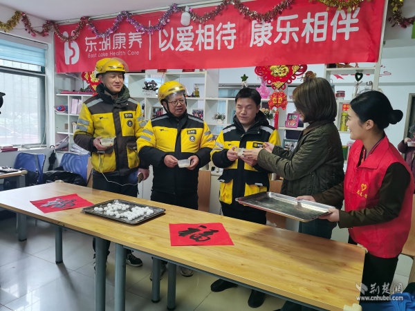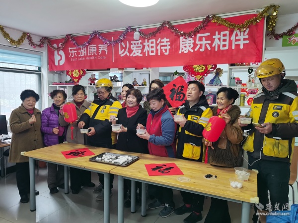 活動(dòng)當(dāng)天,讀書社區(qū)養(yǎng)老服務(wù)中心內(nèi)歡聲笑語、暖意融融。來自不同群體的志愿者們分工協(xié)作、配合默契,社區(qū)退役軍人服務(wù)隊(duì)的隊(duì)員揉面、拌餡有條不紊;武漢客運(yùn)段的志愿者們手法嫻熟,搓圓捏餡一氣呵成;居民志愿者們則在一旁燒水備碗、忙前忙后。大家圍坐在桌前,一邊包著湯圓,一邊拉著家常,在裊裊升起的熱氣中,心與心貼得更近了。