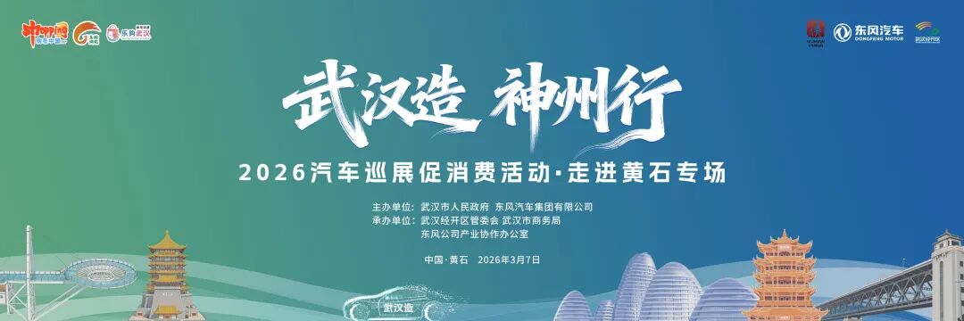 3月7日,“武漢造 神州行”2026汽車巡展促消費(fèi)活動(dòng)·走進(jìn)黃石專場(chǎng)將在黃石市團(tuán)城山萬達(dá)廣場(chǎng)舉行。這也是2026汽車巡展促消費(fèi)活動(dòng)新春第三站。