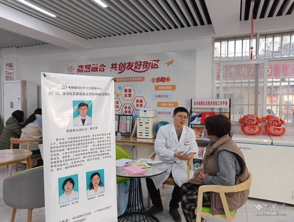 商居社會(huì)客廳經(jīng)過(guò)改造升級(jí),如今每周二,黃鶴樓街社區(qū)衛(wèi)生服務(wù)中心的家庭醫(yī)生團(tuán)隊(duì)都會(huì)在此坐診,為居民提供血壓測(cè)量、血糖檢測(cè)、慢性病管理、健康咨詢等基礎(chǔ)服務(wù),并針對(duì)老年人、殘疾人等特殊群體開(kāi)展個(gè)性化健康指導(dǎo)。
