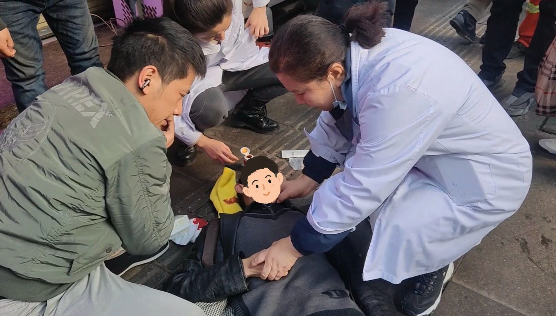 撥開(kāi)圍觀人群,眼前的場(chǎng)景讓所有人的心揪緊了:一位老人仰面躺在一家店鋪門(mén)口,頭部下方已洇開(kāi)一攤血跡,臉色蒼白,雙側(cè)瞳孔散大,意識(shí)喪失,旁邊圍著許多愛(ài)心人士。