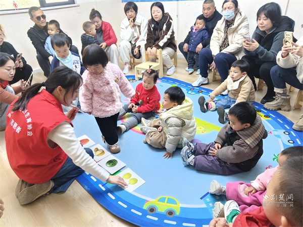 荊楚網(wǎng)(湖北日報網(wǎng))訊(通訊員 付玲)3月18日上午,武昌區(qū)紫陽街道歌笛湖社區(qū)聯(lián)合曼迪哆來咪兒童成長中心正式啟動2026年度親子早教系列課程。首場“語言&認識——有趣的水果”主題活動,吸引12組0—3歲嬰幼兒家庭參與,家長與孩子在游戲中親密互動,共同學習感官啟蒙與語言引導方法。
