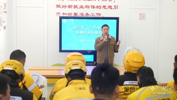 上午10時,活動正式啟動。武昌區(qū)委社會工作部相關負責人向到場騎手簡要介紹近期全區(qū)擬開展的暖“新”服務內容,提前釋放服務紅利。