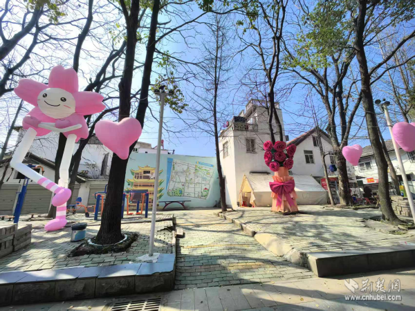 西廠口社區(qū)緊扣漢馬賽事契機(jī),精心打造賽事沿線靚麗風(fēng)景線。從后宰門到花香西廠街巷,社區(qū)因地制宜布置系列景觀小品,軟萌的櫻花人偶憨態(tài)可掬地“坐”在巷口,浪漫的粉色愛心懸掛裝置隨風(fēng)輕搖,錯落有致的花箱綠植點(diǎn)綴其間,墻上的黃鶴樓手繪與街區(qū)地圖墻繪相映成趣。一步一景,處處成畫。這些精心布置的景觀裝置不僅裝點(diǎn)了春日街巷,也為市民游客提供了感受古城文化、記錄美好瞬間的公共空間。
