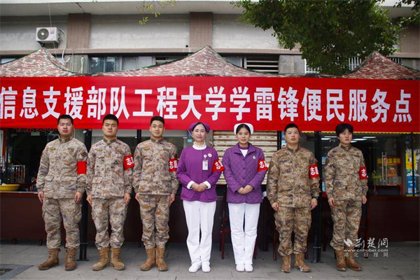 古田街道軍院社區(qū)攜手信息支援部隊(duì)工程大學(xué)搭建學(xué)雷鋒便民服務(wù)點(diǎn)。 通訊員供圖