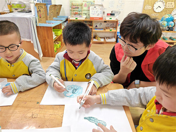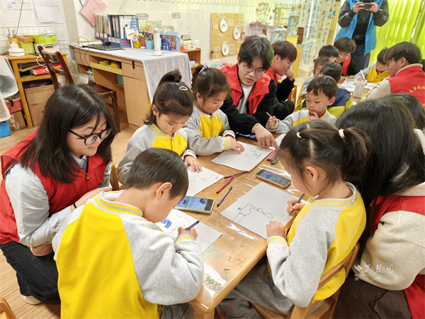 志愿者與小朋友開展互動教學(xué)。 通訊員供圖