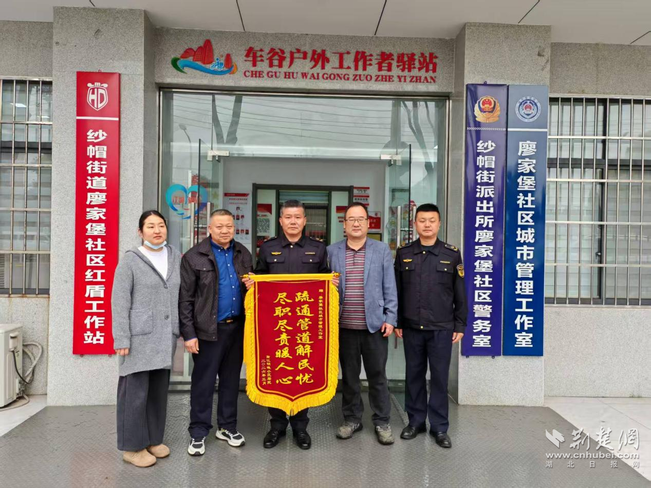 值得一提的是,3月30日,紗帽街道綜合執(zhí)法中心與環(huán)衛(wèi)中心還及時(shí)解決了南江明珠小區(qū)下水道堵塞難題,為居民排憂解難。3月31日,當(dāng)執(zhí)法隊(duì)員燃?xì)鈾z查后返回廖家堡社區(qū)城管工作室時(shí),南江明珠小區(qū)居民代表特意送來一面寫有“盡職盡責(zé)暖人心 疏通管道解民憂”的錦旗,表達(dá)感激之情。