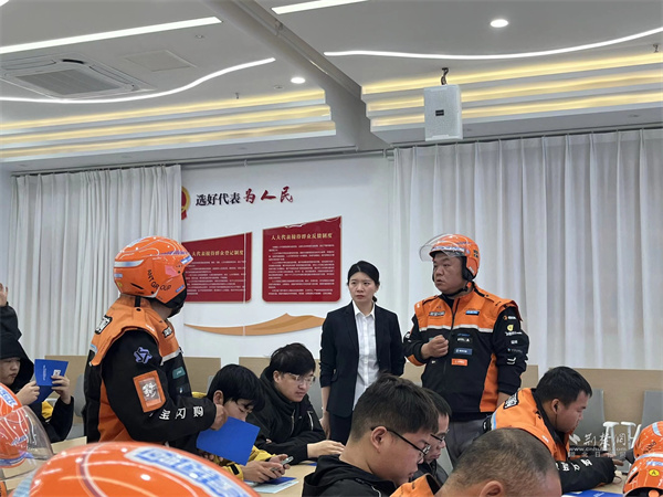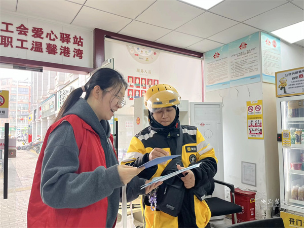社工到驛站為騎手介紹社保知識。 通訊員供圖