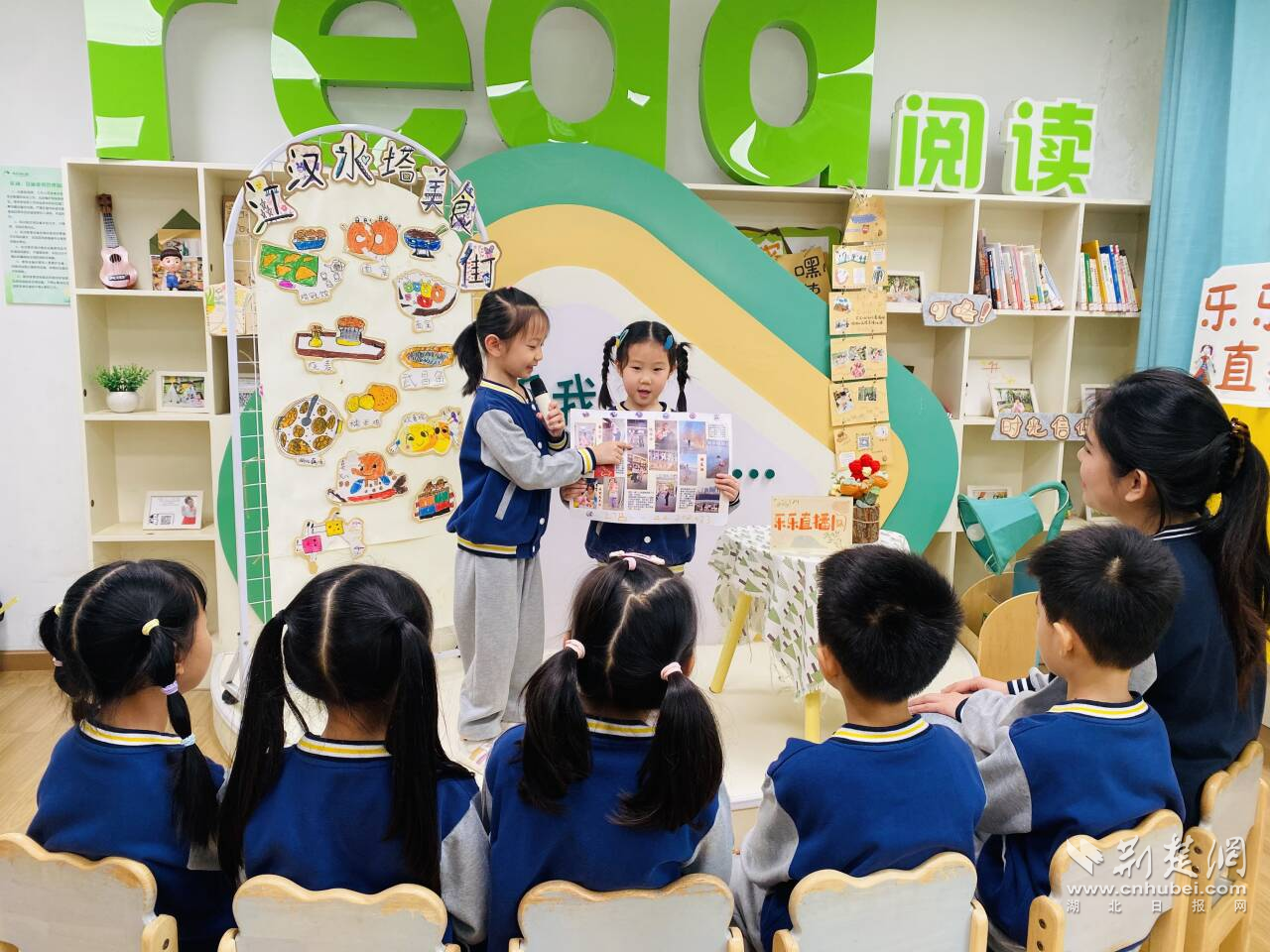 “我最喜歡黃鶴樓的故事,還想帶大家去看看?!被顒右婚_始,孩子們在繪本閱讀中打開了關(guān)于武漢的想象。圍繞本土主題展開的沉浸式閱讀,讓他們在圖文之間感知城市氣韻。