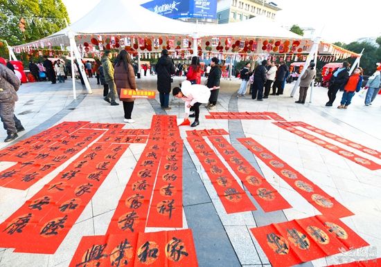 通山縣石瑛廣場墨香送福,剪紙窗花貼滿展架;文體中心山歌繚繞,老藝人陳如銀一曲山歌贏得滿堂彩。